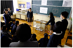 10月31日(水)に、公立小松大学の先生をお招きする出張講座の第2回を実施しました。9月11日の第1回出張講座で探究的な活動や課題探し等についてご講演をいただき、その後の総合的な学習の時間で、研究テーマを決めて課題を設定したり、先行研究や研究手法について調べたりしてきました。今回は、ここまでの活動をまとめ、研究の計画を整理することについて、ご指導をいただきました。
