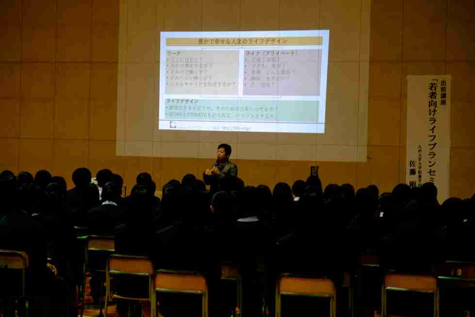 講師の九州大学佐藤剛史先生から、今後の社会情勢の変化や、求められる人材像と合わせ、ライフプランを考えることの重要性についてお話しいただきました。