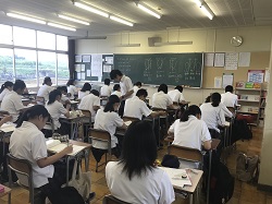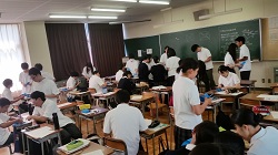 その後、国語、地歴公民、数学、理科、英語、美術、音楽の授業を体験してもらいました。