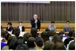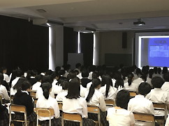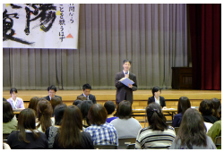 この日の午後、全校生徒を対象に創立記念講演会が開かれました。