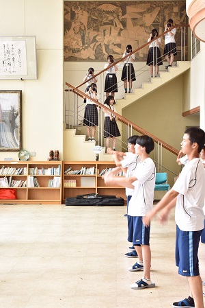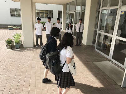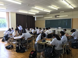 真夏を思わせるような猛暑が続く中、1学期も最終日となりました。この日の午前中は1,2年生がGTEC、3年生は授業を行い、午後から1学期の終業式となりました。式辞では、西日本豪雨や熱中症事例などから、いつ自分の身に降りかかるかわからない危険に対して、危機管理の意識を持つ必要性が語られました。