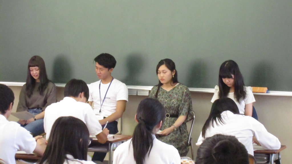 現在大学1年生の卒業生14名が3年生に対して、高校時代の思い出や大学の様子などの質問に答えてくれました。これから受験を控えた3年生にとっては、先輩のアドバイスはとても参考になったようです。