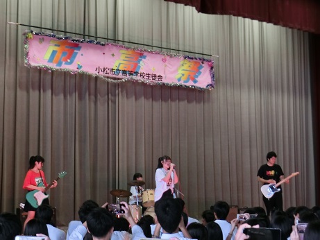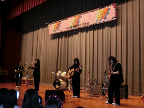 模擬店の賑い バンド演奏と歌声 ギター2本は迫力満点