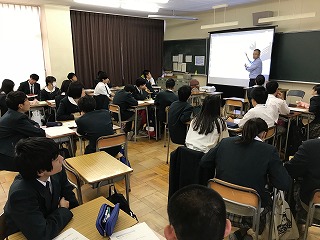 1年生では、文系理系選択についてや、高校卒業後の進路先を考える上で知っておいて欲しいことなどを説明しました。2年生では、新しくなる大学入試制度を中心に説明をしました。