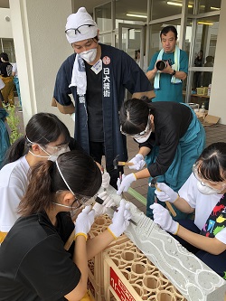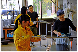 この日、恒例行事である芸術コース美術専攻1年のガラス体験が、吉野工芸の里「ガラス工房 蕾」さん協力のもと行われ、事前に用意したアイデアに出来るだけ近づけれるよう工房の先生と相談しながら制作しました。
