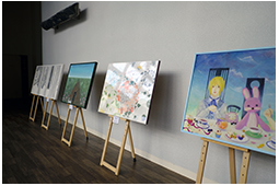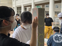 この日、芸術コース体験入学が行われ、絵の基礎であるデッサンを、美術専攻2年生が参加した中学生に指導しました。自身の経験を基に中学生に分かりやすいよう、工夫しながら説明、アドバイスをしていました。