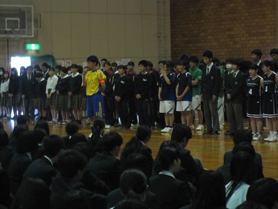 その後は4月からの各種目県大会・予選などで優勝などすばらしい成績を収めたチーム・選手が、校長先生から成績披露を兼ね表彰状の伝達が行われました。