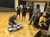 完成したオブジェと九谷焼でつくられた楽器を叩いて、音楽を作りました。