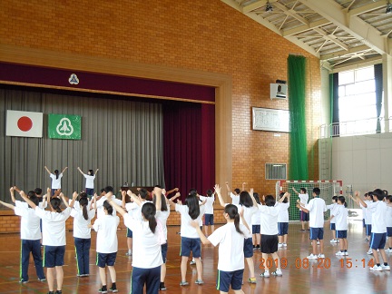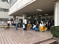 6月の地震対応訓練とは別に実施されたもので、火災発生場所の校内放送とともに、あらかじめ定められた避難経路を通って整然と行動し、第2体育館横に整列しました。