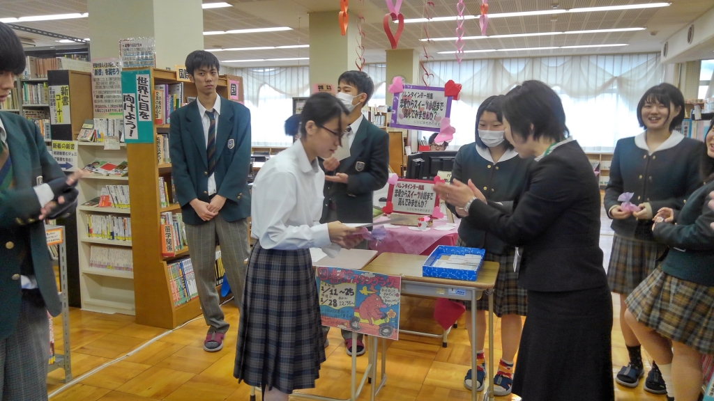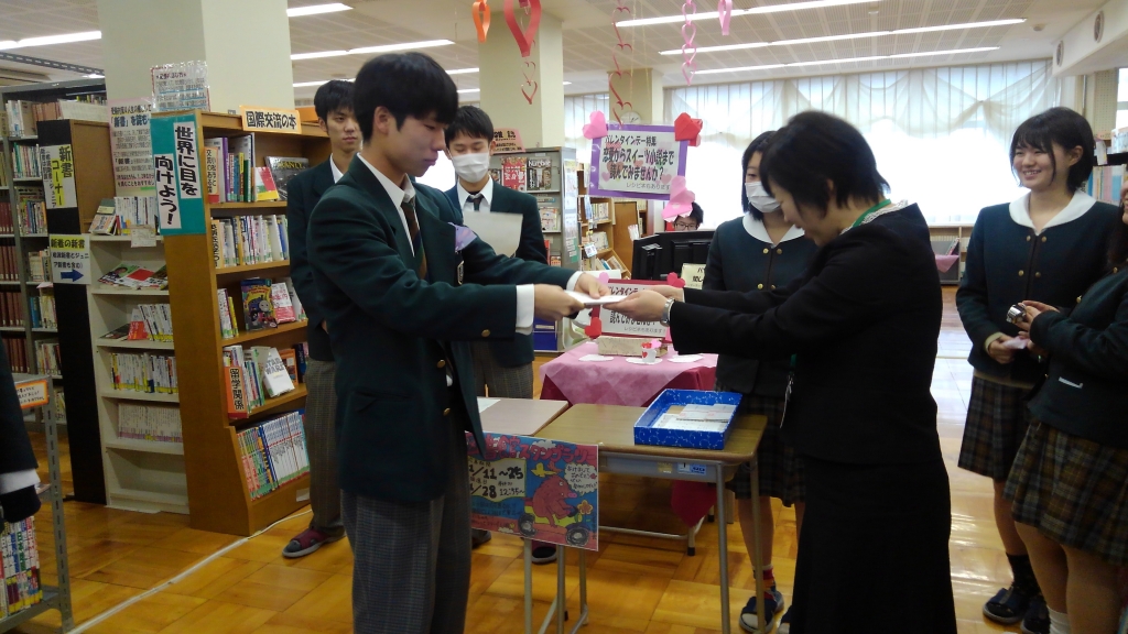 1月28日昼休み、図書館にてスタンプラリー抽選会が行われました。