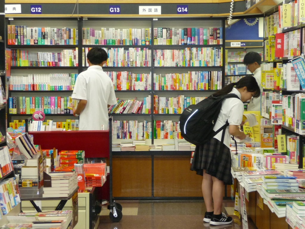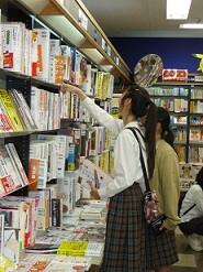 7月25日午後より、図書委員12名が今年も野々市の書店に訪問し、図書室に入れる本の選定を行いました。店員さんに説明を聞いた後、みな迷いながら本を選びました。