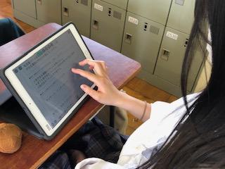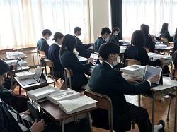 3月3日(水)1年生全員に、1人一台iPadが配布され、早速「総合的な探究の時間」から使用しました。今後は学校の授業だけでなく、家庭学習でも有効に活用してICT教育を推進していきたいと思います。