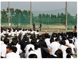 まず、12日から始まる夏の甲子園石川県大会に出場する野球部を先頭に、全国大会に出場するハンドボール、水泳、カヌー、ソフトテニス、ライフル射撃、吹奏楽、合唱の各部が入場行進し、校長先生と生徒会長から激励の言葉がありました。