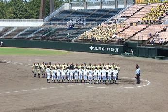 三塁側アルプススタンドに陣取った生徒達からは「打て―」「よくとった、ナイスプレー」の声援とともにサッカー部によるリードで手拍子などの応援を繰り広げました。