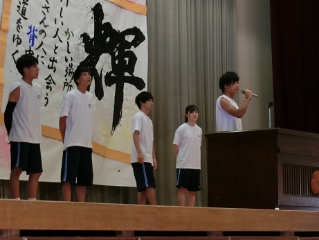 7月9日(月)4限目に全校生徒が体育館に集まり、壮行会と表彰伝達式が行われました。