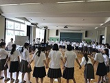8月30日(木)全校生徒が参加し文化祭が開催されました。開会式のあと、各団Tシャツ披露、邦楽部・合唱部・吹奏楽部の発表、各団紹介ビデオ上映が行われました。