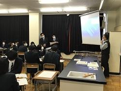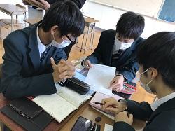 11/9(月)3限目 12Hで数学の研修授業が行われました。生徒自身でチェバ・メネラウスの定理を利用した作問を行い、解き合いました。問題には三角形の内接円や平行線、三角形の面積などを取り入れた工夫が見られ、解く時も、皆真剣に取り組んでいました。数学の教員で授業整理会を行い、石川県教員総合研修センターの指導主事に、指導・助言いただきました。
