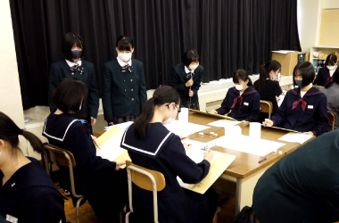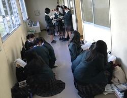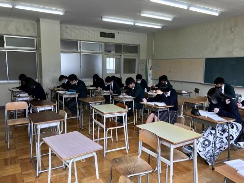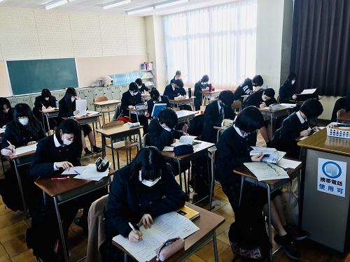 本日25日は、1年生が「音楽理論・美術史」「化学基礎」「英語表現Ⅰ」「現代社会」、2年生が「保健」「現代文」「世界史・日本史」「物理・生物」の考査に取り組んでいます。