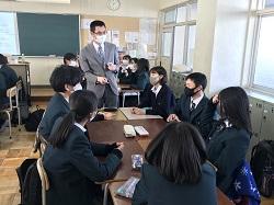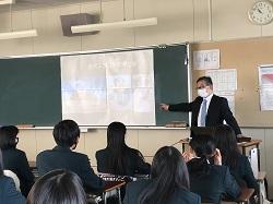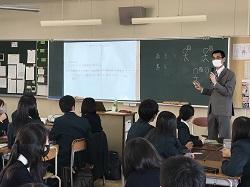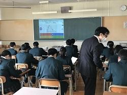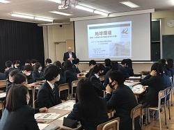 12/9(水) 高大連携クラスの国際教養講座が行われました。今回は公立小松大学生産システム科学部の香川博之教授に地球環境についてお話いただきました。香川先生は南極観測隊に参加されたことがあり、南極観測の歴史、地理、氷柱コアの掘削調査などについてお話くださいました。また、調査からわかってきたことの1つとして二酸化炭素濃度の増加があり、燃料問題への取り組み例として森林資源の活用などの最新情報を説明いただきました。未来を感じる学びの多い授業でした。生徒の感想から「二酸化炭素の削減について調べてみたい」「木からどうやってプラスチックを作るのか勉強してみたい」など関心の高まりがみられました。将来、地球環境にかかわる仕事につく生徒がでるかもしれませんね。