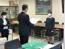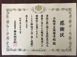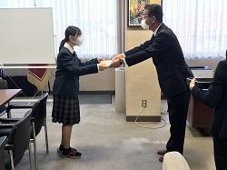 11/12(木) 本校校長室で、小松税務署長の春木様から、税に関する高校生の作文について表彰いただきました。