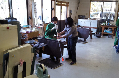 美術専攻1年生、この時期の恒例行事であるガラス実習が吉野谷ガラス工房 蕾さんで行われました。この日までに考えてきた思い思いの作品案をもとに、極力具現化できるように奮闘、指導して頂きました。