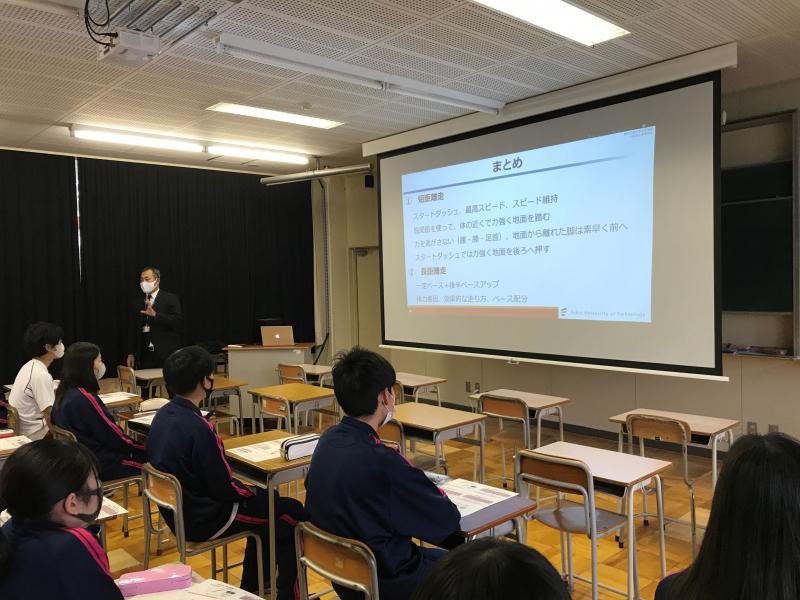 11/26(木) 高大連携クラス(12H)で、福井工業大学の山元康平先生をお招きし「ランニングの科学」をテーマに授業をしていただきました。