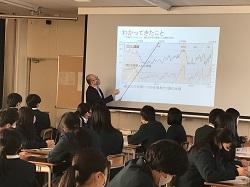 2/12(金) 1年生高大連携クラスで、福井工業大学工学部の砂川武義教授をお招きし、放射線についての授業をしていただきました。化学、物理、生物、医学、また日常生活など幅広い分野に渡ってお話しいただきました。