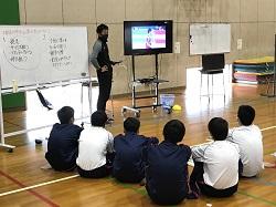 講義と実技演習を行い、講義では動画などを見ながら動作分析や100m走のレース解析の結果から速く走るためのポイントを学びました。その後の実技演習では、実際に身体を動かし体全身を使い速く走るための動作を体験しました。授業の前後で走る姿も変わり、来年の50m走が楽しみです。