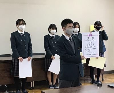 1年生の古本萌々子さんが、税務署長賞を受賞しました。また、本校が多くの作品を募集したことに対し、感謝状が贈られました。