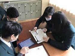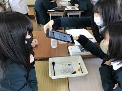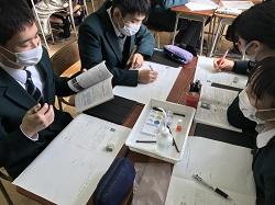 1/12(火) 1年生の化学基礎の研究授業を行いました。実験を通して、反応する酸・塩基の強弱との関係から塩の水溶液の性質を見出す活動を行いました。ほとんどのグループで関係性を見つけ、代表で説明した生徒も、しっかりと内容を把握できていました。授業を行った若手教員は、県総合研修センターの指導主事から指導・助言を受け、今後の授業改善につなげます。