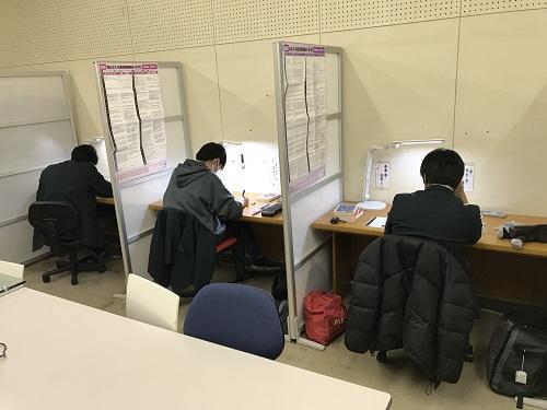 写真は、志望校を目指し、最後まで頑張る姿です。すでに受験を終えた同級生もいる中で、精神的にも辛い時期だと思います。合格し、志望校に通う姿を想像して、最後まで「あと少し」頑張ろう!