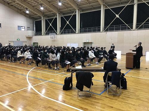 校長先生と進路指導課より激励があり、受験する3年生は気持ちを高めて明日から全力を尽くす決意を固めました。