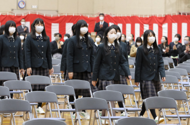 今年も昨年同様コロナ対策を万全とするため、保護者人数制限、在校生は代表のみとし、時間も短縮させる形で進められました。それでも3年生にとっては、学校や先生、そして友達との最後の大切な時間です。式後も校内には名残惜しむ卒業生の姿が多く見られました。