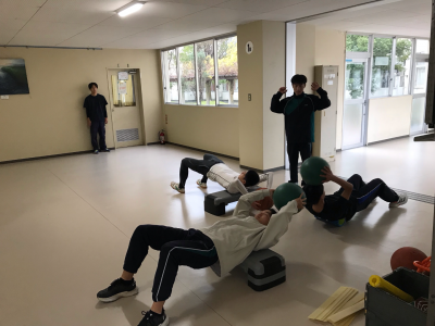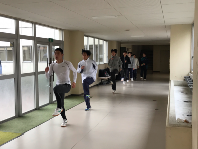 部長を中心にこれからの練習についてミーティングを行ってから、室内でトレーニングをしました。