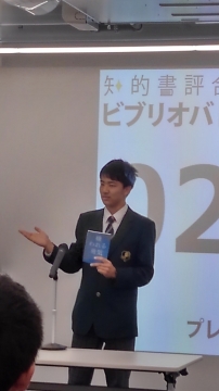 11月16日(土)野々市カレードで行われた全国高等学校ビブリオバトル石川県大会で、本校から山口晴太郎君(1年)、西手美月さん(2年)、山田凛さん(2年)が出場し、県内5校10名の中で書評合戦を繰り広げました。予選を経て、決勝戦は3校4名の中から見事、山口君が『嫌われる勇気』でチャンプ本を勝ち取り、石川県代表となりました