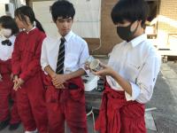 また登り窯と呼ばれる、九谷焼を作るにあたっての特製の窯を見学させてもらいました。登り窯は階段状に数部屋に分かれている構造をしており、最高で摂氏1300度にもなる窯の中に、生徒たちは交替で防熱の手袋を着用して薪を投げ入れました。