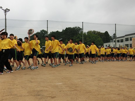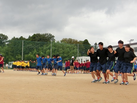 体育祭は、校歌を歌いながらの入場行進で始まり、開会式では団長5名が堂々とした選手宣誓を行いました。その後、降雨のため中断しましたが、午後にプログラムを組み替えて実施されました。若いちからが発揮され、総合優勝は黒団が勝ち取りました。