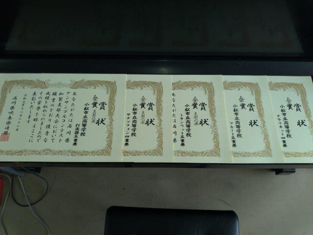 市立からは5チーム出場。️フルート五重奏・サックス四重奏・クラリネット四重奏・トランペット五重奏・打楽器五重奏です!オール金賞を頂き、そのうち3チームが加賀支部代表となりました。