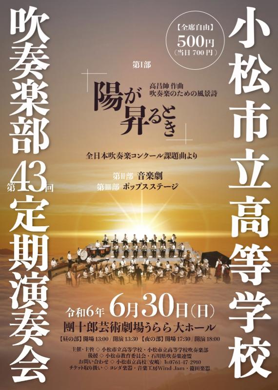 吹奏楽部より小松市立高等学校吹奏楽部第43回定期演奏会のお知らせです✨✨