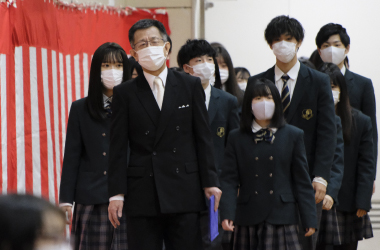今年も昨年同様コロナ対策を万全とするため、保護者人数制限、在校生は代表のみとし、時間も短縮させる形で進められました。それでも3年生にとっては、学校や先生、そして友達との最後の大切な時間です。式後も校内には名残惜しむ卒業生の姿が多く見られました。
