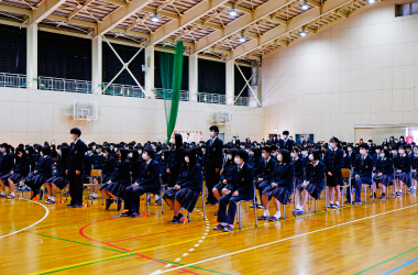 激動の令和2年度、最後の行事となる終業式・離任式が、この日執り行われました。今年度、あまり行うことができなかった体育館での表彰伝達式と終業式の後、離任式では、この大変な時期を生徒と学校のために尽力していただいた校長をはじめ、7名の先生方が生徒たちにそれぞれの想いと、メッセージを語りました。