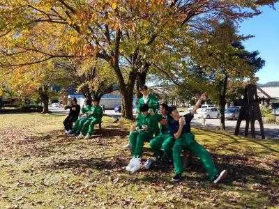 この日は一日中雲の無い清々しい秋晴れの日となり、昼休憩の時間は辺りを散策したりお弁当を近くの公園で食べたりして、普段の学校生活とは違う環境の、心地よい山あいの自然に包まれて過ごしました。