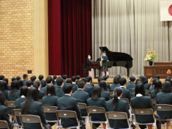 この春就任された久保出 将司校長は式辞で「チャレンジすること、レジリエンスを高めること、思いやりをもつこと」を中心に新入生160名に実のある3年間になるよう述べられました。