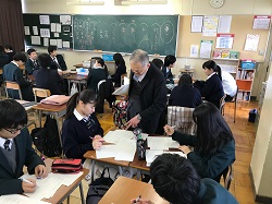 「総合的な探究の時間」に公立小松大学 保健医療学部 看護学科 鋤柄増根教授にご来校いただき、生徒達の探究活動を指導していただきました。自分たちの立てた計画や調査方法へのアドバイスを熱心に聞く姿が見られました。