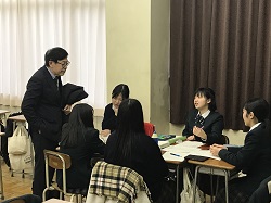 2/5の探究活動では、公立小松大学の岩田礼教授と富澤敦教授に、調査の方法や整理分析の仕方についてグループ毎に指導・助言をしていただきました。