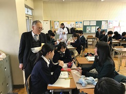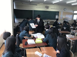 「総合的な探究の時間」に公立小松大学 保健医療学部 看護学科 鋤柄増根教授にご来校いただき、生徒達の探究活動を指導していただきました。自分たちの立てた計画や調査方法へのアドバイスを熱心に聞く姿が見られました。