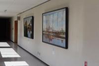 本校芸術コース美術専攻の特別講師西房浩二先生(洋画家)から寄贈していただいた油彩画を本校会議室前廊下に展示しました。大作「TORN」と「Castelnaudary」を専攻生が鑑賞しました。これからもいつでも間近で見ることができる本物の教材として活用させていただきます。ありがとうございました。