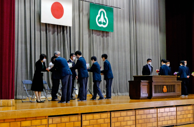 激動の令和2年度、最後の行事となる終業式・離任式が、この日執り行われました。今年度、あまり行うことができなかった体育館での表彰伝達式と終業式の後、離任式では、この大変な時期を生徒と学校のために尽力していただいた校長をはじめ、7名の先生方が生徒たちにそれぞれの想いと、メッセージを語りました。