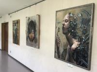 今年の美術部の活動の一つとして「校舎を彩る」を目標にチームごとにテーマを決め、これまで先輩たちが描いてきた作品を校内に展示しています。第1回は新学期のスタートに合わせ「自分を見つめる」というテーマのもと人物画を中心に約30点の作品を展示しました。第2回のテーマ「癒し」はコロナ禍の学校生活で少しでも気持ちが和らぐように動物を描いた作品を中心に展示しました。(上段 第2回「癒し」 下段第1回「自分を見つめる」の一部です)
