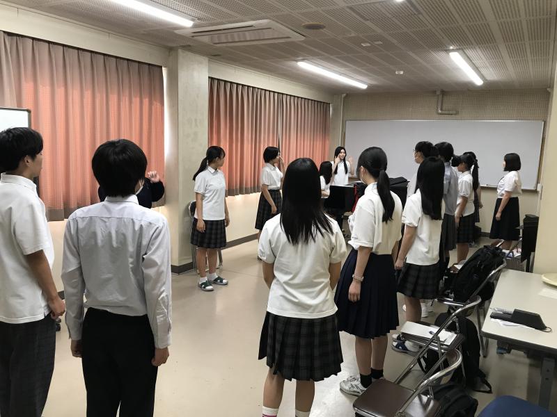 体をほぐすストレッチ、発声練習、高校生たちの合唱を披露、そして質問コーナーと盛りだくさんな部活動体験になりました。